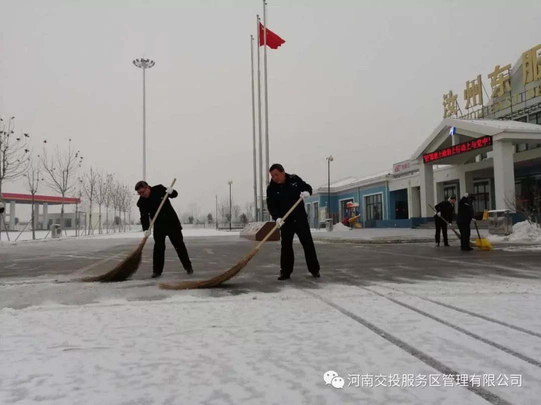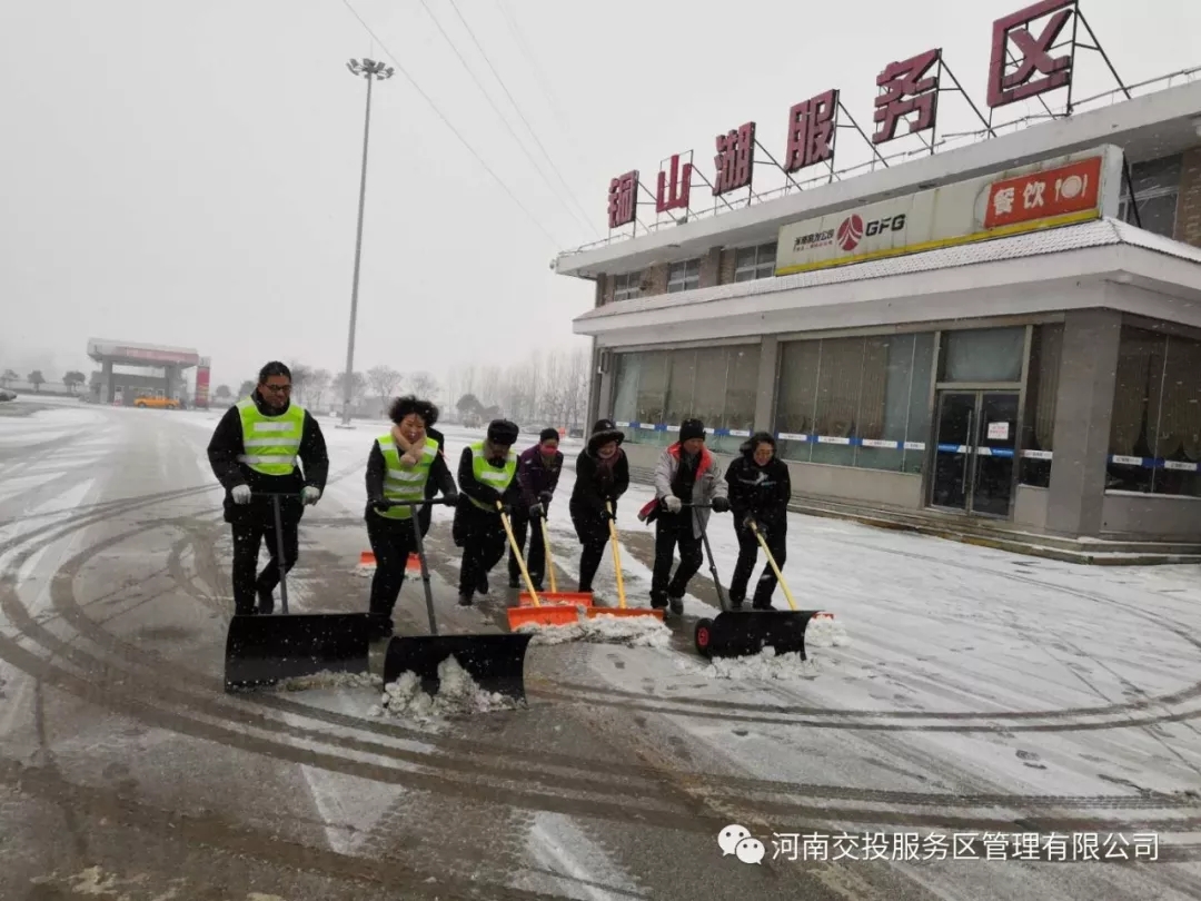 面對降雪,服務區全體員工積極應對,以雪為令,除雪保通。