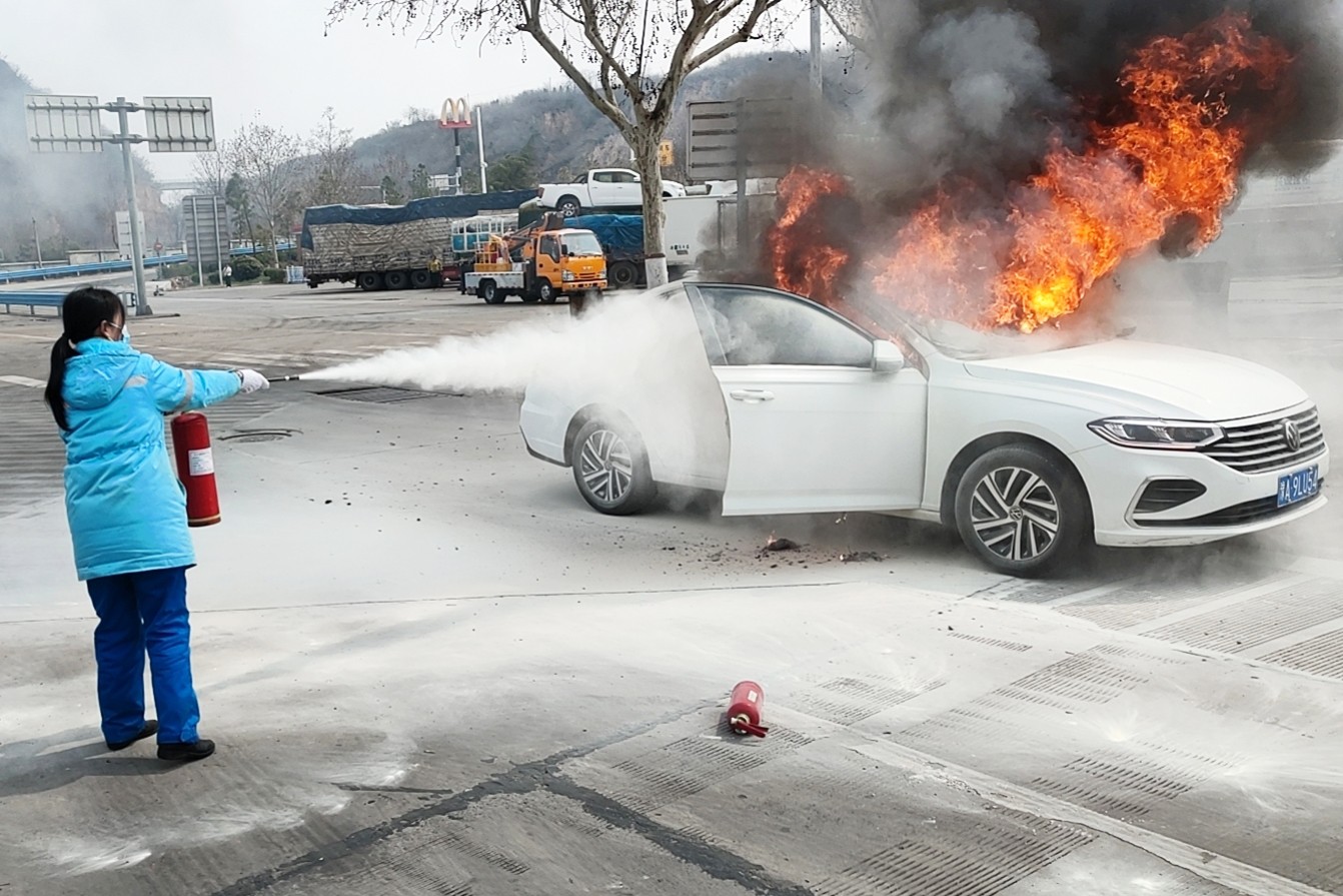 小轎車自燃 鞏義服務區(qū)、加油站緊急滅火保安全